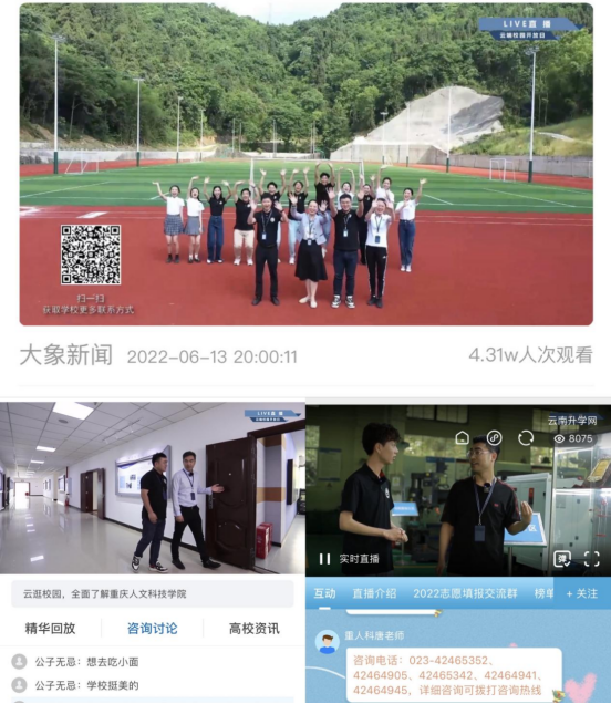 为方便广大考生和家长及时全面地了解学校办学特色和招生信息,今年学校以在线互动的方式开展了9场线上直播、6场线上咨询周活动,累计超8万人次考生和家长观看直播、参与咨询。线上直播以视频的形式把学校办学特色、人才培养、专业特色等多个方面的情况向考生和家长进行了展示,让学生家长及社会人士能“云”上看校园,一览大美人科。