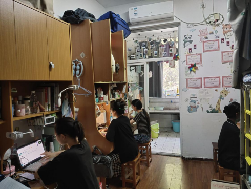学生在宿舍上课