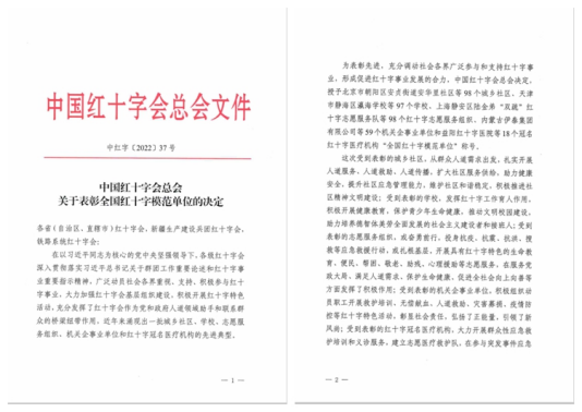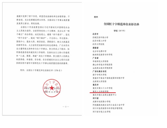 日前,中国红十字会总会下发《关于表彰全国红十字模范单位的决定》,授予学校“全国红十字模范单位”荣誉称号,点点也是重庆市唯一一所获得该项荣誉的高校。
