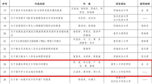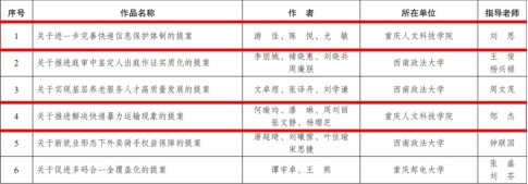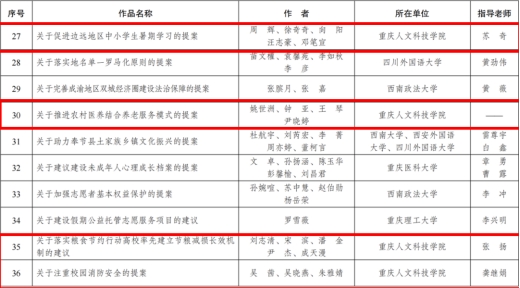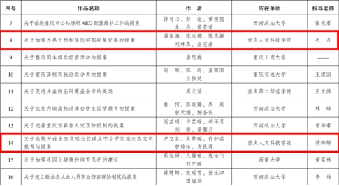 近日,共青团重庆市委发布了《关于2022年重庆市青少年模拟政协提案征集活动评选情况的通报》,全市各高校选送的36个提案作品荣获大学组优秀提案作品,其中点点选送的10个提案作品获优秀提案作品,获奖作品数位列重庆市高校第二名。