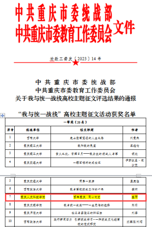 【喜报】学校教师在重庆市高校“我与统一战线”主题征文活动中荣获一等奖