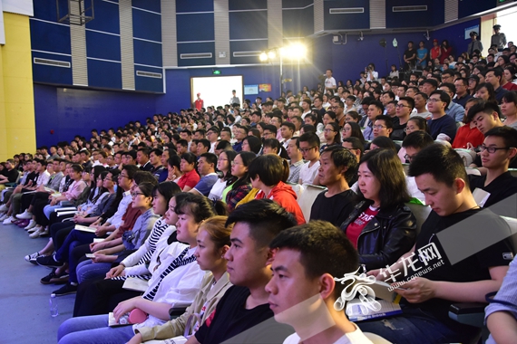 报告会上,曾留学英国9年的彭阳返乡创业的故事,更是深深吸引了在场学子。