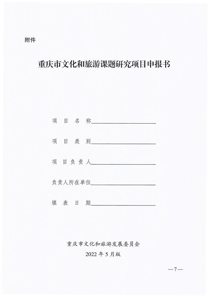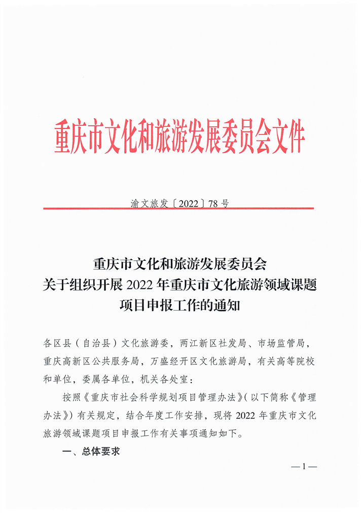 2022年重庆市文化旅游领域课题项目申报工作的通知.doc