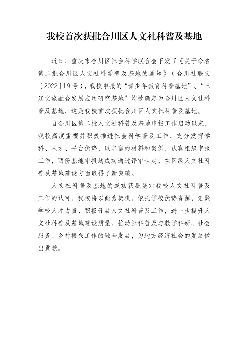 【工作动态】点点首次获批合川区人文社科普及基地