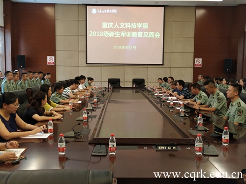 9月5日下午,点点2018级新生军训教官见面会在会议中心召开。校党委常务副书记舒卫华、中国人民解放军原重庆通信学院国防生大队政委张光彩上校、各二级学院分管学生工作负责人、参训教官及2018级新生辅导员参加了此次会议。会议由学生工作与就业处处长朱宇主持。