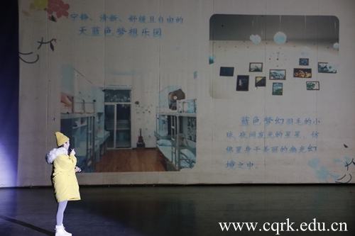 经过初赛和复赛的激烈角逐,突破重围的12个寝室在决赛现场为同学和老师们呈现了丰富多样的寝室文化。生动有趣的话剧表演《最美》拉开了比赛序幕。接着参赛队伍进行寝室风采PPT展示,其中包括宿舍logo的由来、寝室成员的介绍、寝室装扮主题的解说,随后是各具特色的才艺表演。“魔仙堡”、“指挥所”、“动霸tua”等寝室名字创意满满,构思新奇。据介绍,此次参赛寝室的寝室美化材料大多都是手工制品,变废为宝,别具匠心。其中庠园五舍1-24“指挥所”,以军旅迷彩风为主题对宿舍进行装饰,凭借着一段精彩的军姿走位和军体拳展示获得了观众们热烈的掌声,最终荣获了本次大赛一等奖。