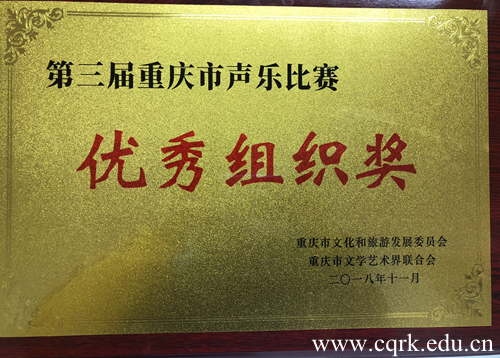 由重庆市文化和旅游发展委员会、重庆市文学艺术界联合会主办的第三届重庆市声乐比赛于11月16日晚落下帷幕。经过激烈角逐,点点青年教师杨娜、黄豆分别荣获民族组二等奖和流行音乐组三等奖,青年教师夏邦泓、魏维分别荣获美声组优秀奖和流行音乐组优秀奖,学生男、女合唱团被评为合唱组优秀奖,艺术学院荣获优秀组织奖。