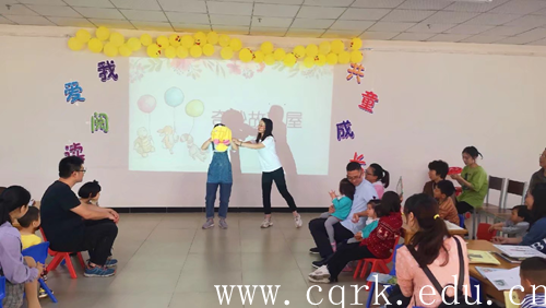 本次活动分为两个环节,第一环节为亲子阅读,到场的小朋友和家长一起阅读了图书馆亲子阅览室新到的绘本,并观看了部分教职工家庭在家拍照的亲子朗读视频。第二环节为现场互动,学前教育学院的同学们为小朋友们带来了精彩的《小鸭子找朋友》、《小白鱼》儿童故事演绎、亲子折纸等幼活动。
