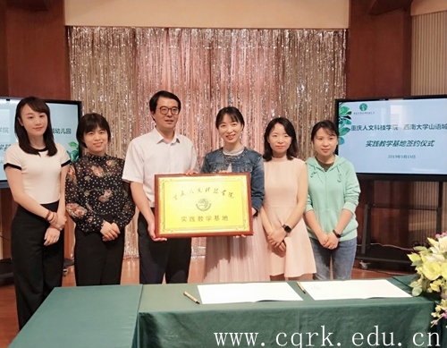 5月15日,学前教育学院院长陈世联一行3人到西南大学山语城幼儿园商谈合作事宜,并现场签订了实践教学基地协议。
