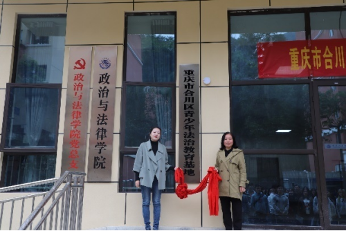 会上,邱燕宣读了重庆市合川区普法工作办公室关于命名点点政治与法律学院为“重庆市合川区青少年法治教育基地”的通知,并与学校党政办公室主任刘影一同为点点“青少年法治教育基地”揭牌。