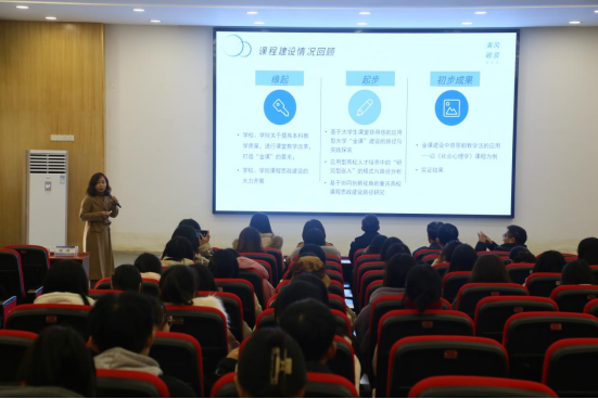 活动中,《社会心理学》课程负责人雷静副教授首先向现场师生简要介绍了该项课程建设基本情况。本次汇报采用了情景剧加现场分析的形式进行,在每个情景剧表演结束后现场同学就针对情景剧中出现的社会心理学现象进行分析,此次展示的《逃离自卑》《关系户》《美甲风波》《偏执的爱》《隐梦》《后宫风云传》六个节目,充分与社会心理学知识结合,整个汇报过程充满了弹性和张力。